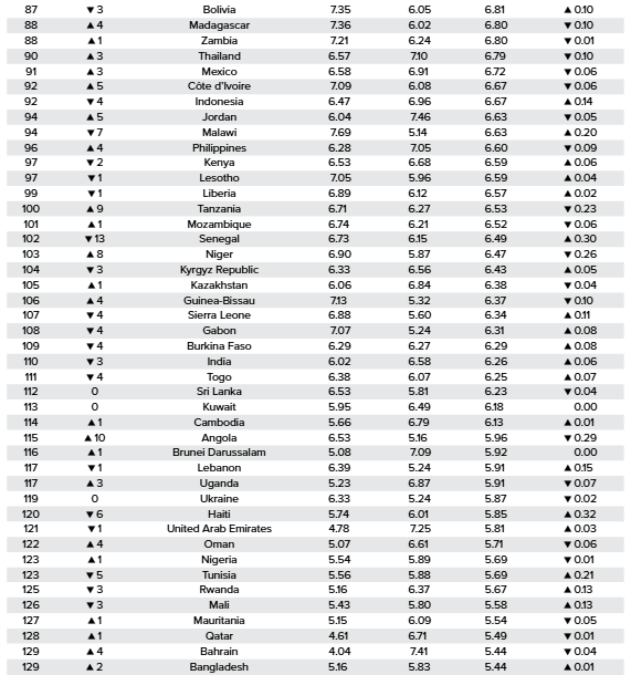 美国同样保持在第15位,但其自由评分比2022年的数据下降了0.04分。