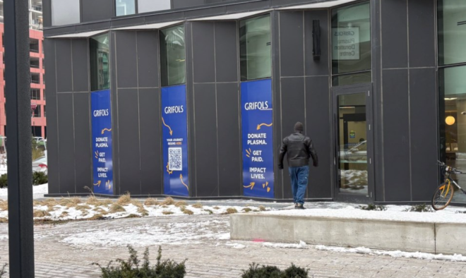 周二下午,TorontoToday在Grifols北约克诊所外等候,从中午到下午1点左右,大约有15人进入诊所。四位接受采访的人表示,他们来捐血浆是因为需要钱。