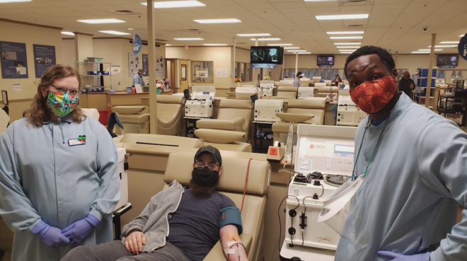 这名男子说,他是通过Grifols在Instagram上的付费广告了解到诊所的。他已捐献血浆6次,并计划继续,除非找到工作,否则会一直捐。