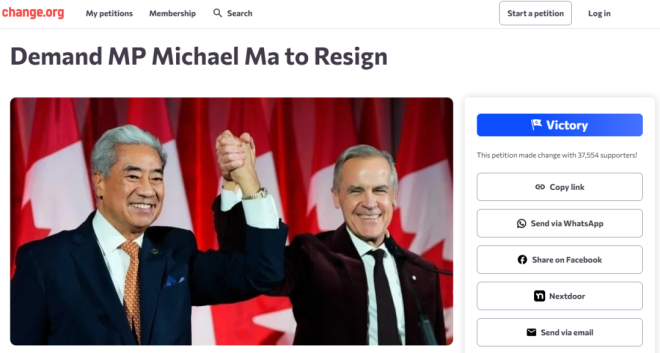 这是大多伦多地区(GTA)万锦—于人村(Markham–Unionville)选区的选民,对加拿大联邦国会议员马荣铮(Michael Ma)上周从保守党倒戈加入自由党的评价。目前,已有超过3.7万人在一份请愿书上签名,要求他辞职。