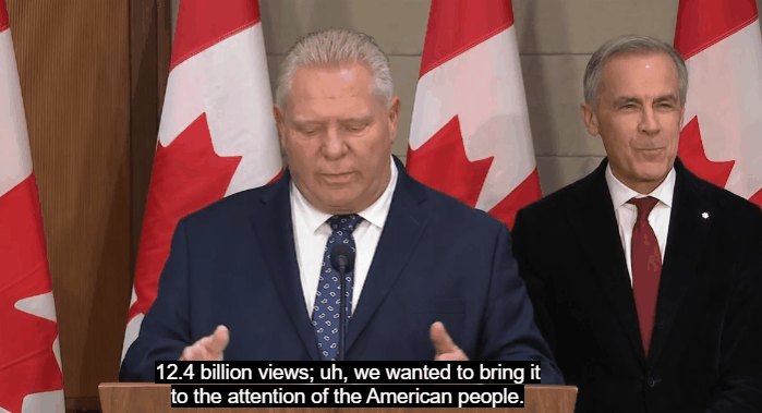 最明显的例子,莫过于福特政府曾斥资7,500万加元,制作并投放了一则广告,显示美国前总统里根(Ronald Reagan) 出镜,讲述关税政策的危害。