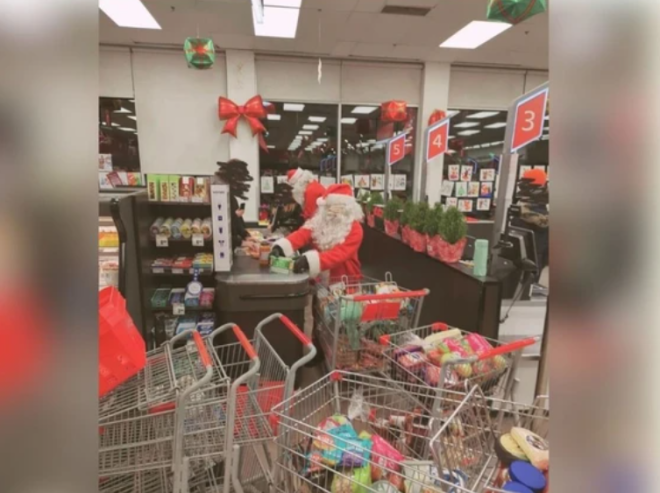 据CTV报道,本周一晚上,在加拿大一家Metro超市里,多名“圣诞老人”带着一大群戴着面具的“精灵”推着购物车在货架间快速穿梭,把食物装满一车又一车。