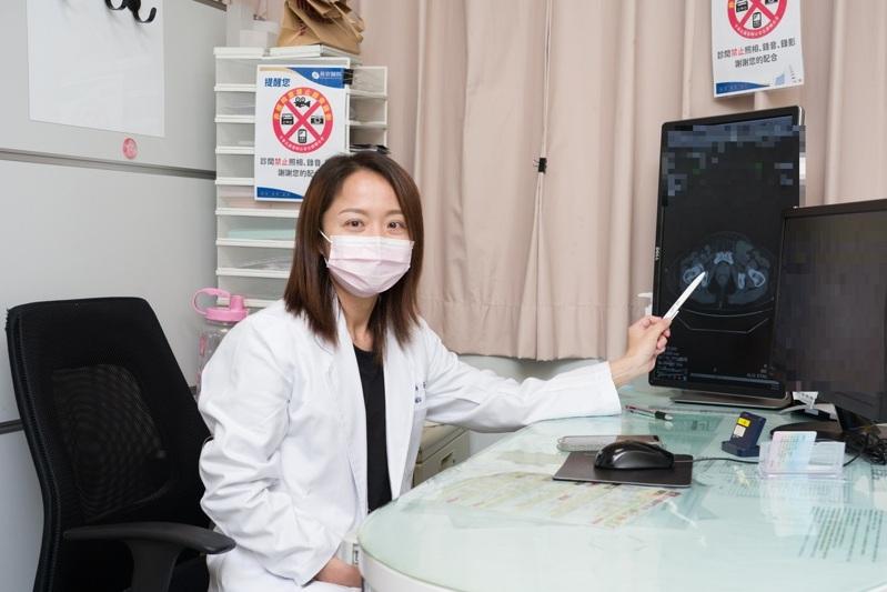 吴佩玲说明,该名患者前来就诊时,主诉持续的左下腹疼痛与明显的腿部水肿。超音波发现骨盆腔内有直径超过7公分的肿块,触诊时也注意到患者腹部严重胀气且硬实,鼠蹊部淋巴结也明显肿大,随即进一步安排肿瘤标记与电脑断层检查。