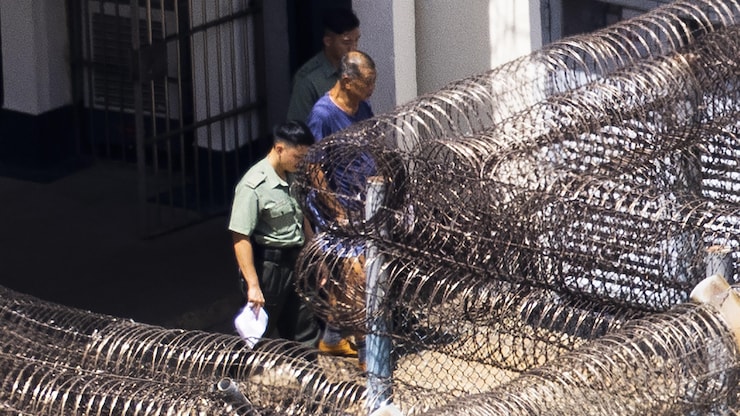 2023年8月,黎智英在香港赤柱监狱内走动。