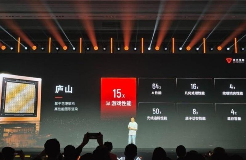而「庐山」则是花港架构的第二款芯片,主打高性能图形渲染场景,得益于花港架构的新一代指令集,算力密度提升50%,能效提升10倍,内置第一代AI生成式渲染架构(AGR)、第二代光追硬件加速引擎,完美支持DirectX 12 Ultimate。