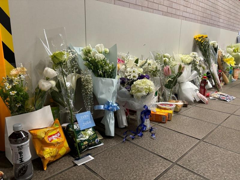 另外,在蓝线台北车站B1层事发地点,陆续有民众放置花束、饮料、零食,哀悼昨天英勇制止犯嫌不幸往生的余姓保全,用沉默的方式表达无尽的哀思。