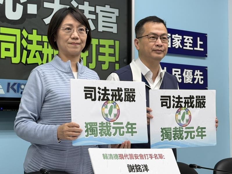 国民党团呼吁,司法体系的公务员及大法官,莫沦为赖总统独裁政权的打手,最后可能成为独裁政权的弃子、牺牲品,而葬送一生的清誉及前途,得不偿失。依据中华民国刑法第124条枉法裁判罪,有审判职务之公务员或仲裁人,为枉法之裁判或仲裁者,处1年以上7年以下有期徒刑,喊话司法机关公务员们,请三思而行。