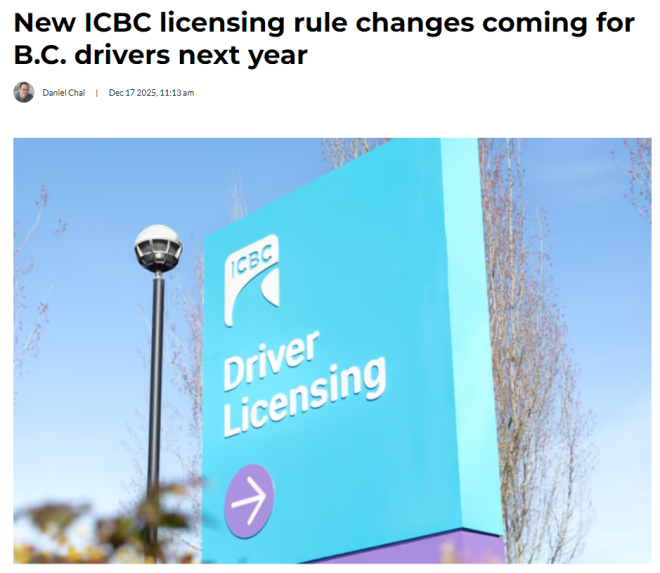 新闻信息来源:https://dailyhive.com/vancouver/icbc-licensing-rule-changes