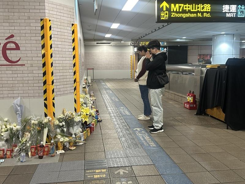 北捷与卫生局合作,在南西诚品1楼人行道、北车M7出口层设立追掉区,让民众可以送花、饮品、食物等追悼,才过一天现场几乎已被花束、饮料等摆满,还有不少民众写上卡片追悼,实际观察,捷运人潮似乎没受太大影响,加上周日北车会有不少穆斯林礼拜,搭乘捷运人潮还是很多。