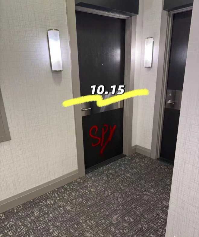 事件始于10月15日一早。博主出门时赫然发现,隔壁邻居的公寓大门被人用红色喷漆涂写了“SPY”(间谍)字样。