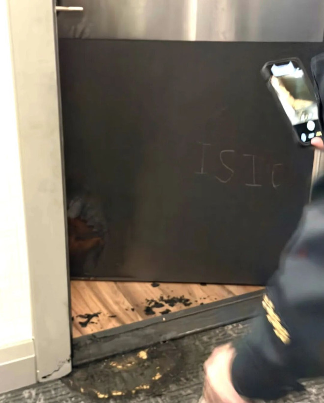 就在一个月后的11月30日,博主打开家门后,再次发现隔壁邻居的家门竟被人用钥匙或利器刻下了两个符号,以及“IRGC”字样。