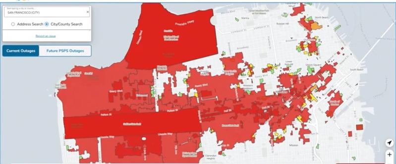 紧急事务管理局指出,停电影响范围遍及全市,居民可通过Pacific Gas and Electric Company(PG&E)停电中心网站或拨打1-800-743-5002查找最新复电进度,并建议注册停电即时通知服务,以掌握第一手资讯。