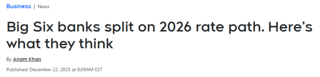 加拿大最大的几家银行在迈入2026年之际,对利率最终走向的判断出现了明显的分歧。