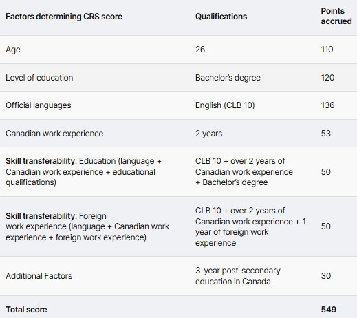 基于其背景条件,Anjana的CRS分数为549分。由于她拥有加拿大工作经验,符合加拿大经验类(CEC) 资格,而这一分数高于2025年所有CEC抽签的分数线。这意味着,如果她在今年进入候选池,极有可能获得永久居民申请邀请。