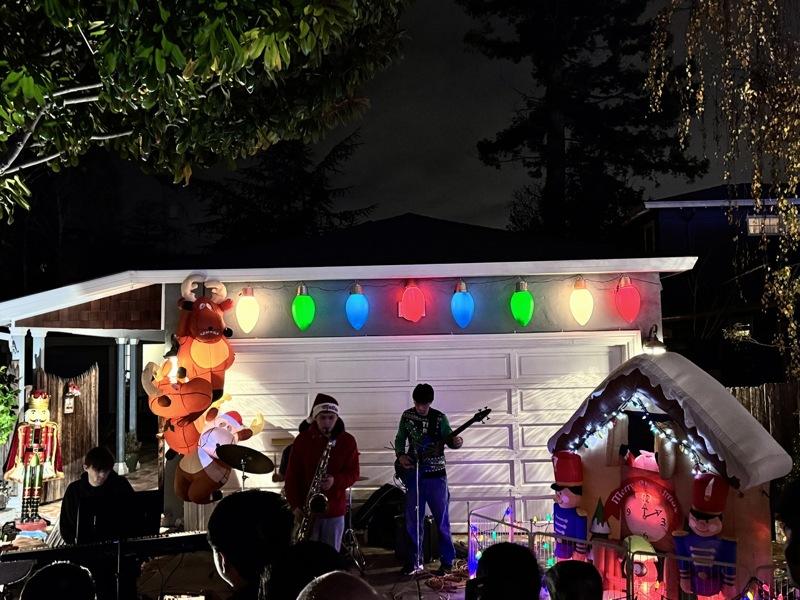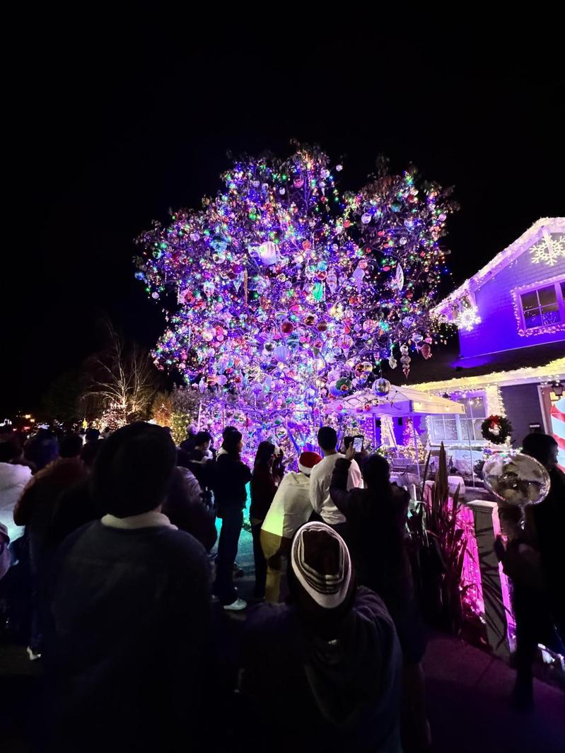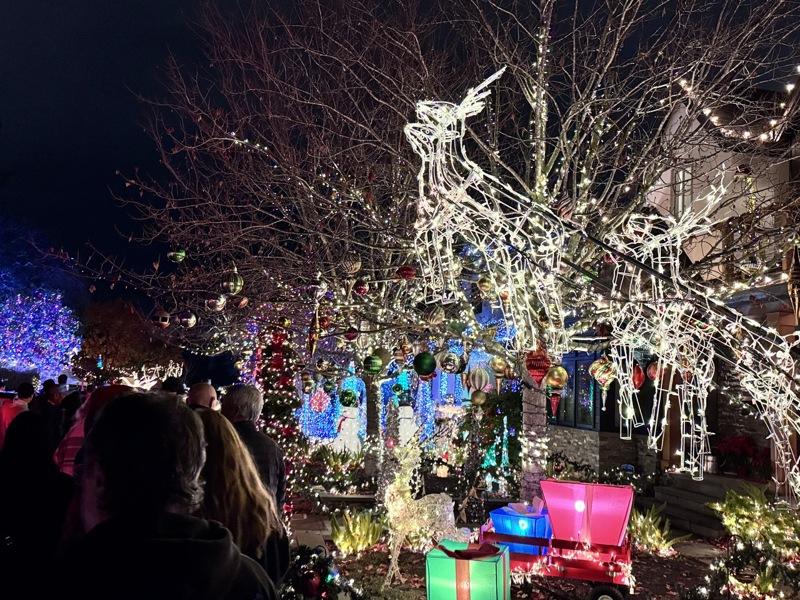 多位曾造访的居民分享,今年的装饰水准「又上了一个层级」。有人注意到,街上出现以史努比为主题的飘雪灯屋,也有住户在庭院搭起小型舞台,播放音乐、展示大型充气圣诞老人与麋鹿,甚至还有家庭组成乐队在彩灯中演出圣诞曲目,为现场增添惊喜。到了傍晚五点半后,人潮逐渐涌现,发光气球、热可可摊位也让孩子们乐在其中。