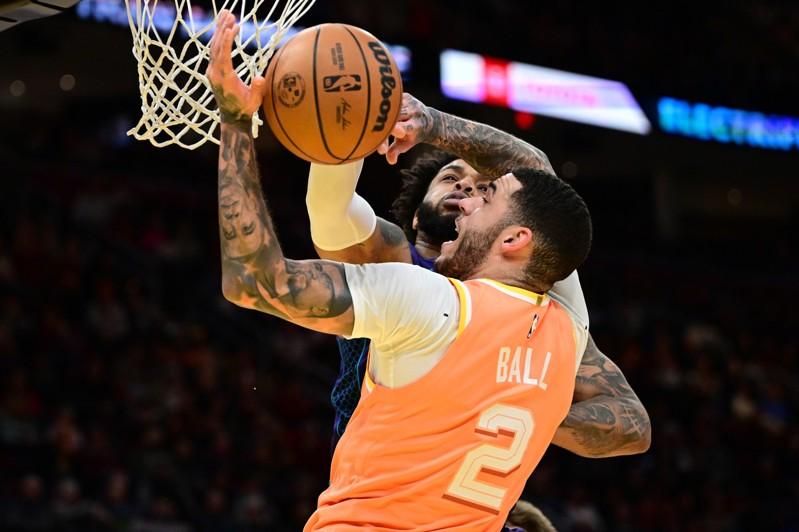 骑士队的「球哥」鲍尔(Lonzo Ball)今天和黄蜂队的弟弟小鲍尔(LaMelo Ball)同场较劲,不过风采被骑士球星米契尔(Donovan Mitchell)和葛兰特(Darius Garland)抢走,两人联手轰下57分,米契尔还投进第二节大号压哨三分球,助队以139:132击败黄蜂。