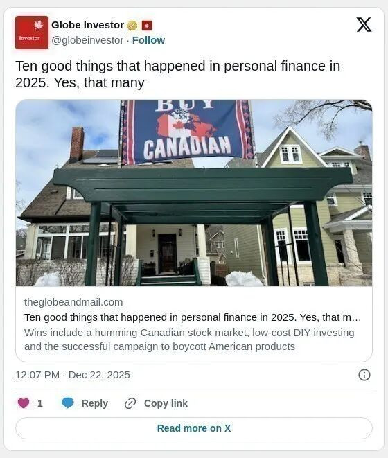 总体来看,虽然经济环境复杂,但2025年加拿大投资者和家庭财务仍有不少值得庆祝的胜利。