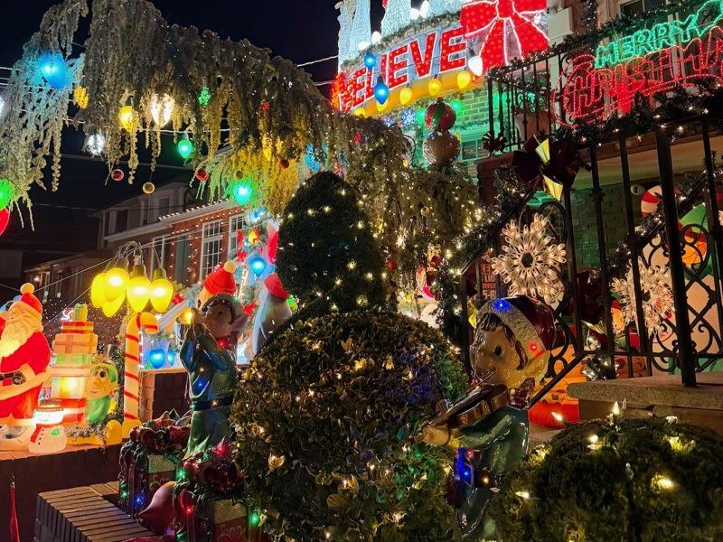 位于布碌仑(布鲁克林)的戴克高地(Dyker Heights)圣诞灯光秀,已成为纽约假日季节最受欢迎的景点之一。每年12月,当地屋主都会装上铺天盖地的圣诞灯饰,还有真人比例大小的圣诞老人、雪橇与雪人占据一栋栋民宅门前,有些屋主甚至播放圣诞颂歌,整个街区都充满节庆气氛。