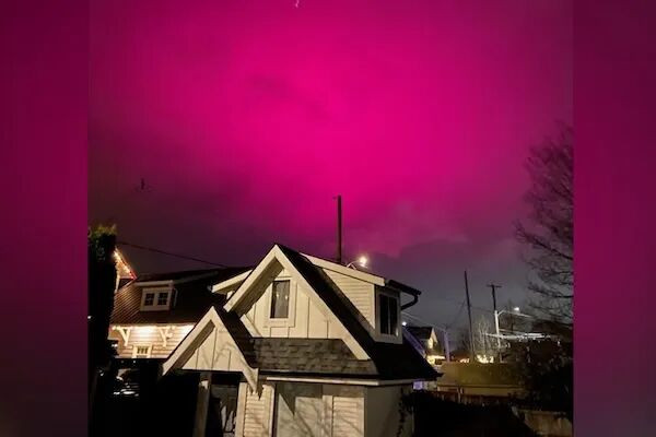 居住在萨里(Surrey)新月海滩附近的Cathy Latremouille表示,当晚她望向窗外,看到整片天空被紫光笼罩:“我以前从未见过这样的景象。如果我的房间朝南,我以为美国那边着火了。”