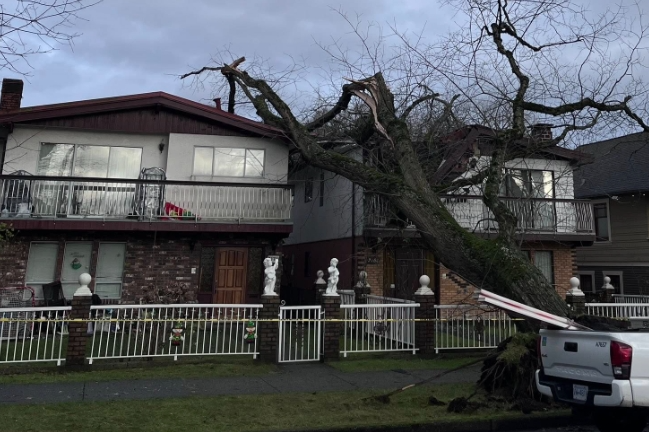 继上周暴风雨席卷大温地区发生树木倒榻压毁民宅事故之后,有市民爆料指出,一间位于温哥华住宅于周一(22日)晚间再发生同类事件。