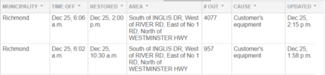到下午2点左右,列治文所有客户的停电问题都得到了解决。