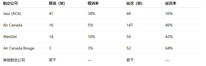 受强降雪和冬季风暴影响,Jazz、加拿大航空(Air Canada)、西捷航空(WestJet)、波特航空(Porter)等多家航空公司面临严重的服务中断,导致全国数千名旅客被迫滞留。