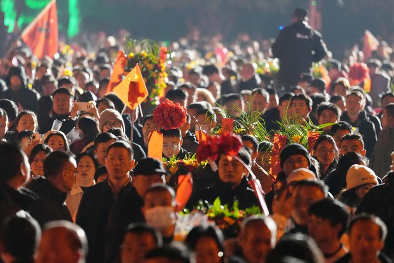 据中新社、极目新闻报导,来自中国全国各地的民众,从25日起自发前往湖南韶山毛泽东铜像广场敬献鲜花、瞻仰毛泽东铜像,高唱「歌唱祖国」等歌曲,挥舞红旗。20岁的广东青年罗城凯与好友首次到韶山,他说,民众纪念伟人的场景,让他体会到「吃水不忘挖井人」的深意。来自河北保定的70岁老人郭恒志则是连续11年来到当地纪念。现场还有上万游客排队同吃福寿面。