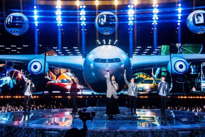 五月天昨起在台中洲际棒球场,挑战9天办6场「回到那一天」巡演,今晚来到第2场,主唱阿信、吉他手石头与怪兽、贝斯手玛莎、鼓手冠佑依旧活力满满,阿信还用台语亏2.5万名粉丝的尖叫声不够有力,打趣称要唱少一点「放你们去吃宵夜」。