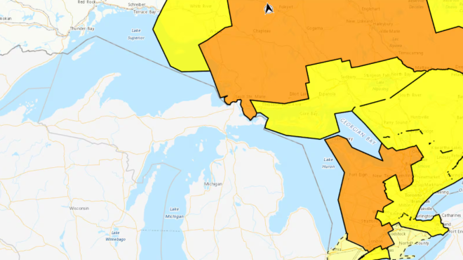 Coulter说:“这些强劲而寒冷的风预计还会在休伦湖和乔治亚湾上空形成明显的湖效应雪暴。一些毗邻这些水域的传统多雪地带局地降雪量可能达到25至50厘米,并在今天和今晚面临接近暴风雪的状况。”