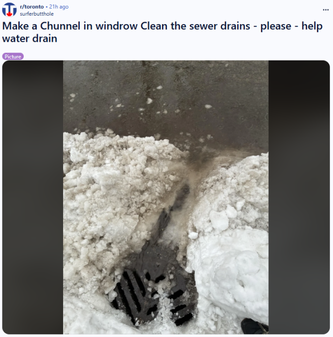 12月28日下午,一位多伦多网友通过Reddit论坛发帖提醒、分享经验,呼吁大家一起动手,帮助城市“把水送走”。