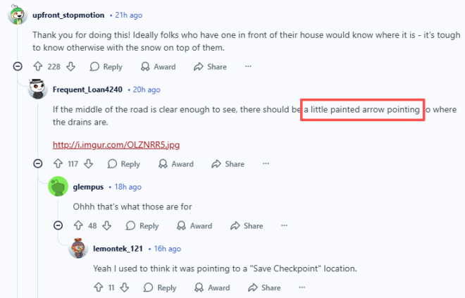 有网友指出,如果下水口就在自家门口,那就比较容易找。但是如果在别人家门口,被雪盖住的话,那就很难发现了。