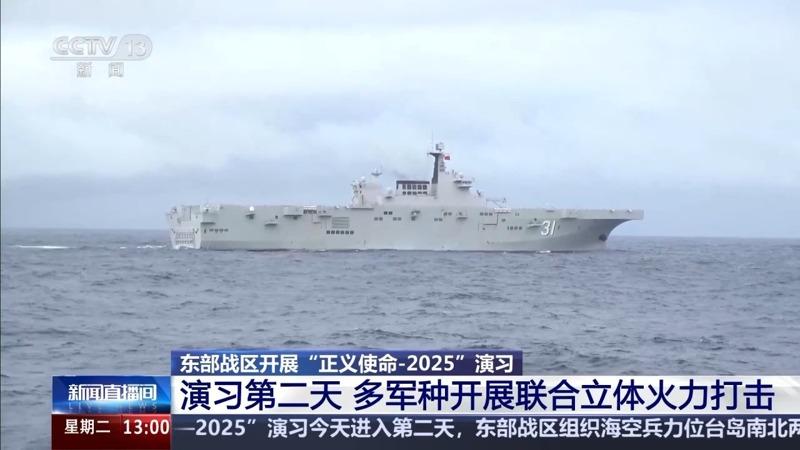 中国解放军东部战区15时30分左右在发布消息称,在台湾以东海域开展立体投送、精兵破袭、夺控要港等科目演练。(图/取自央视新闻)