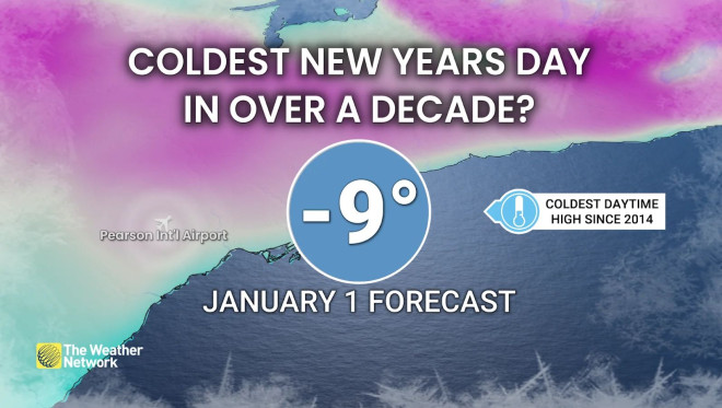 如果目前的天气预报准确,多伦多在元旦当天可能迎来十多年来最寒冷的一天,预计最高气温仅为零下9摄氏度,这将是自2014年以来最冷的元旦。