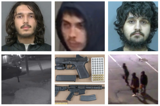 皮尔区警方随后逮捕了汗,并查获两支“已上膛的违禁枪支”,其中包括一支具备全自动射击能力的AR风格步枪、超容量弹匣,以及110发子弹。