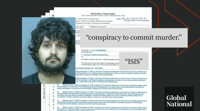 “这些证据令人高度担忧,”RCMP助理专员马特·佩格斯(Matt Peggs)在11月26日汗被控多项恐怖主义罪名后的视频声明中说。