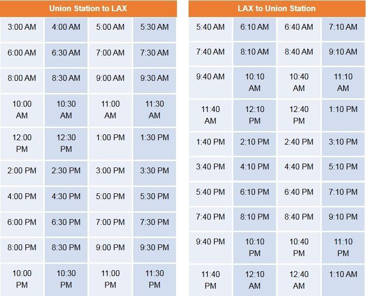 FlyAway为洛杉矶机场专用巴士服务,目前提供洛杉矶国际机场(LAX)往返市中心联合车站(Union Station)和范奈斯(Van Nuys)两条接驳路线。其中,往返Union Station与LAX之间的市中心线班次最为密集,由华人团队营运。其负责人鹿强介绍,该路线每30分钟一班,几乎全天候营运,每日约22小时不中断,清晨3时即有首班车自Union Station发车,凌晨1时10分仍有自机场返程班次,涵盖红眼航班与清晨起飞需求。