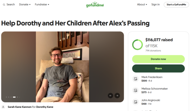 家人发起的GoFundMe募捐活动已为他的妻子Dorothy Kane和他们的三个年幼孩子(最小的才9个月大)筹集了超过11.5万加元。