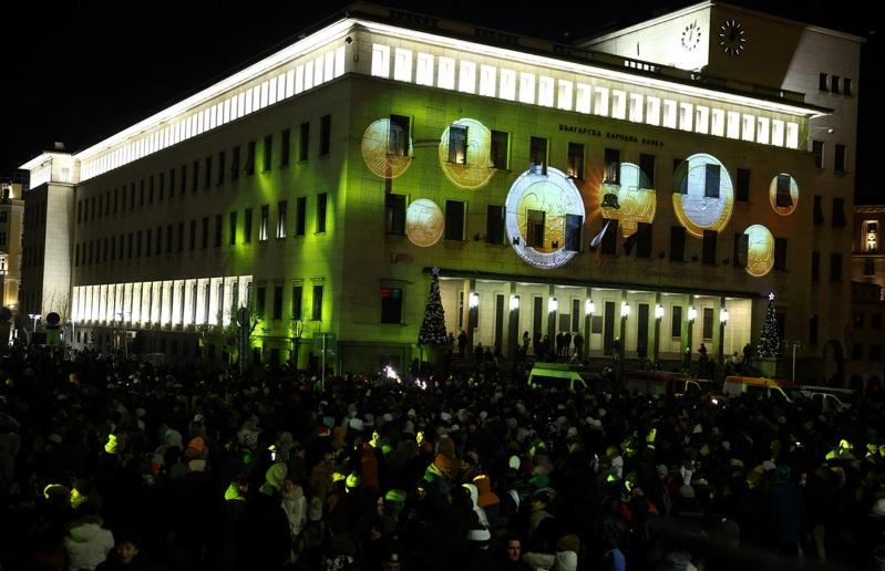 保加利亚在午夜告别自19世纪末以来使用的货币列弗(lev),中央银行大楼上投影出保加利亚欧元硬币图案。首都索菲亚(Sofia)有数以千计民众不畏零下低温参与跨年活动。