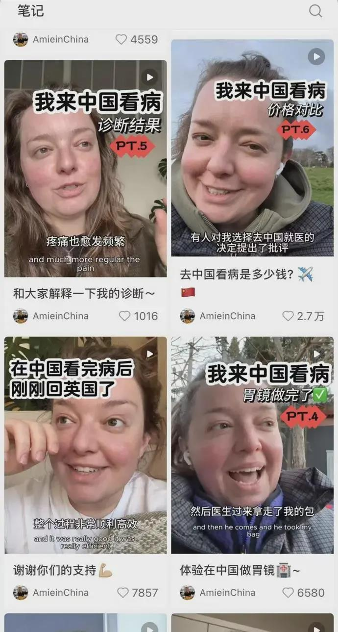 艾米在短视频中表示,自己被胃疼困扰许久,如果在英国国家医疗服务体系治疗,至少要等待两周才能约上医生。而同样两周时间,她已在中国做了全套检查,「效率真的超级高。」