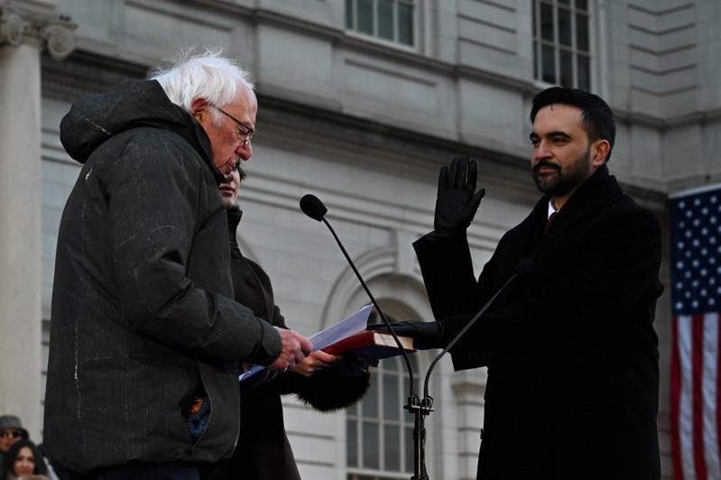 1月1日下午1时,曼达尼(Zohran Mamdani)于市政厅前宣誓就任纽约市长。曼达尼表示,在撰写就职演说时有人告诉他,这是「降低期待」的时刻,应该劝纽约人少要一点、甚至别再期待。但他拒绝这么做,他「唯一想要重设的,是小期待本身。」他指出,即使外界对其施政方向心存疑虑,但他将对包括未投票支持他的市民在内,给予同样的保障。