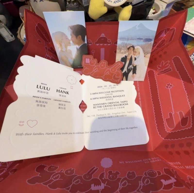 「综艺大热门」前制作人潘筱晴2日在Threads分享这份喜悦,公开Lulu与陈汉典的喜帖,并开心表示:「2026第二天就收到典Lu的喜帖,真的好幸运,好可爱的一对夫妻,爱你们。」她也被外界视为促成两人结缘的重要推手之一。