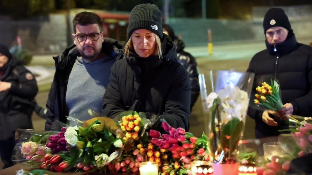 Des personnes déposent des fleurs devant le bar « Le Constellation », en Suisse, après un incendie et une explosion survenus lors d’une fête du Nouvel An.