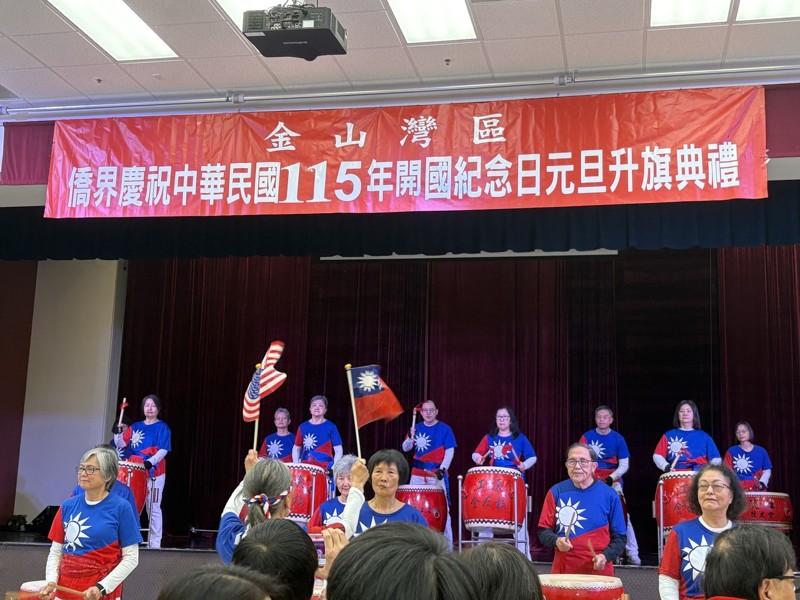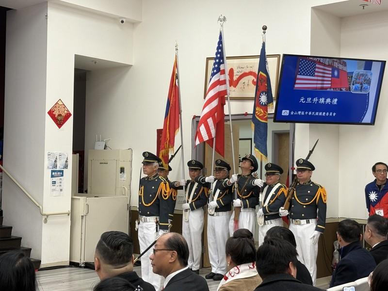 今年元旦升旗典礼于金山湾区侨教中心举行,由金山湾区国庆委员会主办。典礼上午10时准时展开,在淡江大鼓队、鼓舞健身团的鼓声中揭开序幕,现场气氛庄严而热烈。随后,国旗队进场,全体与会者肃立,高唱美国国歌与中华民国国歌,完成年度重要的升旗仪式。