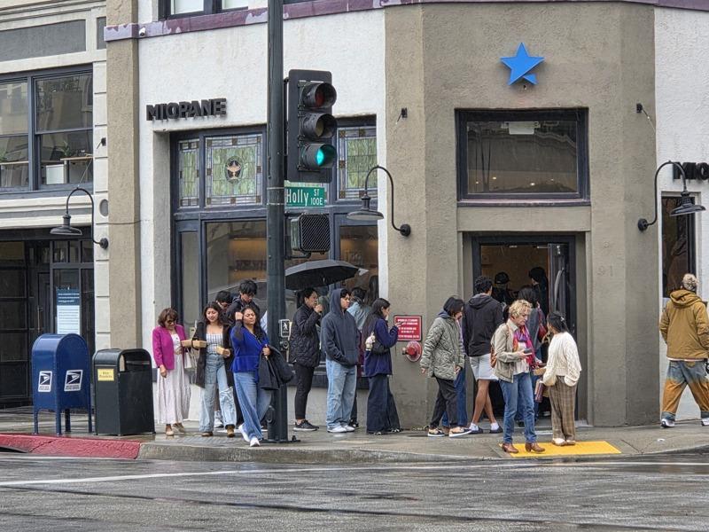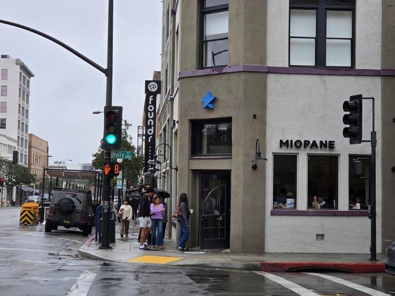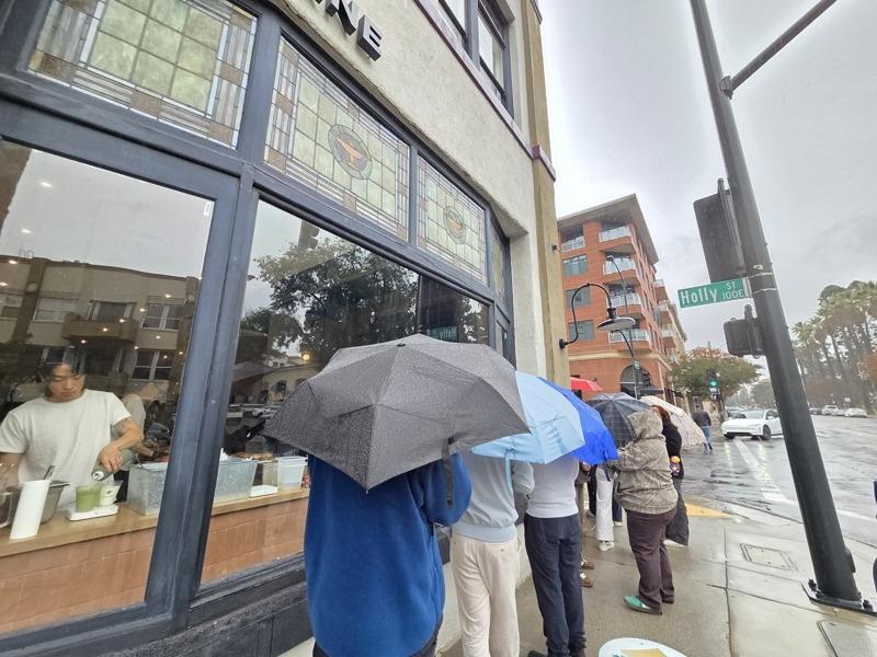 来自台湾、以创新风味与手作工法闻名的贝果品牌MIOPANE,1日于南加州巴沙迪那开设美国首家分店,吸引大量顾客一早排队等候。排队人龙2日依旧,尽管当天下雨,仍浇不息民众热情,队伍延伸至街口,店内更是座无虚席。