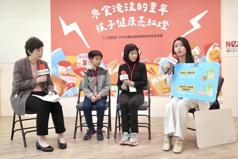 儿盟4日召开「零食淹没的童年 孩子营养亮红灯」2026年台湾儿童饮食调查报告记者会,儿盟研究暨组织发展处处长黄韵璇表示,在早餐方面,孩童最常摄取的食物依序为豆浆及乳类占51.4% 、其次为面包46.7%,以及蛋类制品32.8% ,但有18.0%学生早餐会喝含糖饮料、12.4% 会吃热狗、鸡块等炸物。