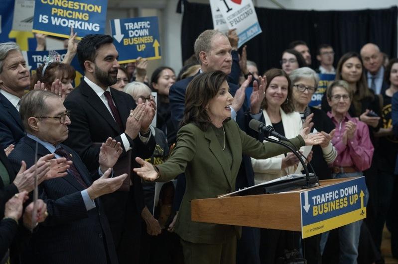 5日下午,纽约州长霍楚(Kathy Hochul)、市长曼达尼(Zohran Mamdani)、大都会运输署(MTA)主席兼首席执行官利博(Janno Lieber)及一众民代集会庆祝堵车费成效。根据州府及MTA数据,堵车费已使平均车流量下降11%,显著改善部分跨河隧道与桥梁的通勤时间,节省单程驾驶多达15分钟。