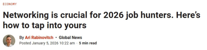 在贸易战和关税阴影之下,新的一年对加拿大的求职者而言充满挑战。但专家指出,人脉拓展(networking)仍然是2026年提高成功就业概率的最佳策略之一。