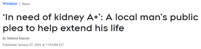来自安省 Tecumseh 的一名男子,为了增加接受肾脏移植的机会,公开将自己的电话号码贴在温莎-埃塞克斯(Windsor-Essex)多辆车上,希望找到合适的捐赠者。