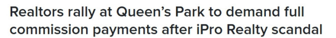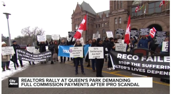 安省最大地产经纪公司之一iPro Realty倒闭后,被拖欠佣金的地产经纪人于本周二聚集在省议会大楼(Queen’s Park)前,希望省政府能听到他们的诉求,要求获得全额赔偿。