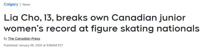 这位花样滑冰小将周三在2026年加拿大花样滑冰锦标赛上一路领先,再次刷新加拿大青少年女子项目纪录,并夺得金牌。